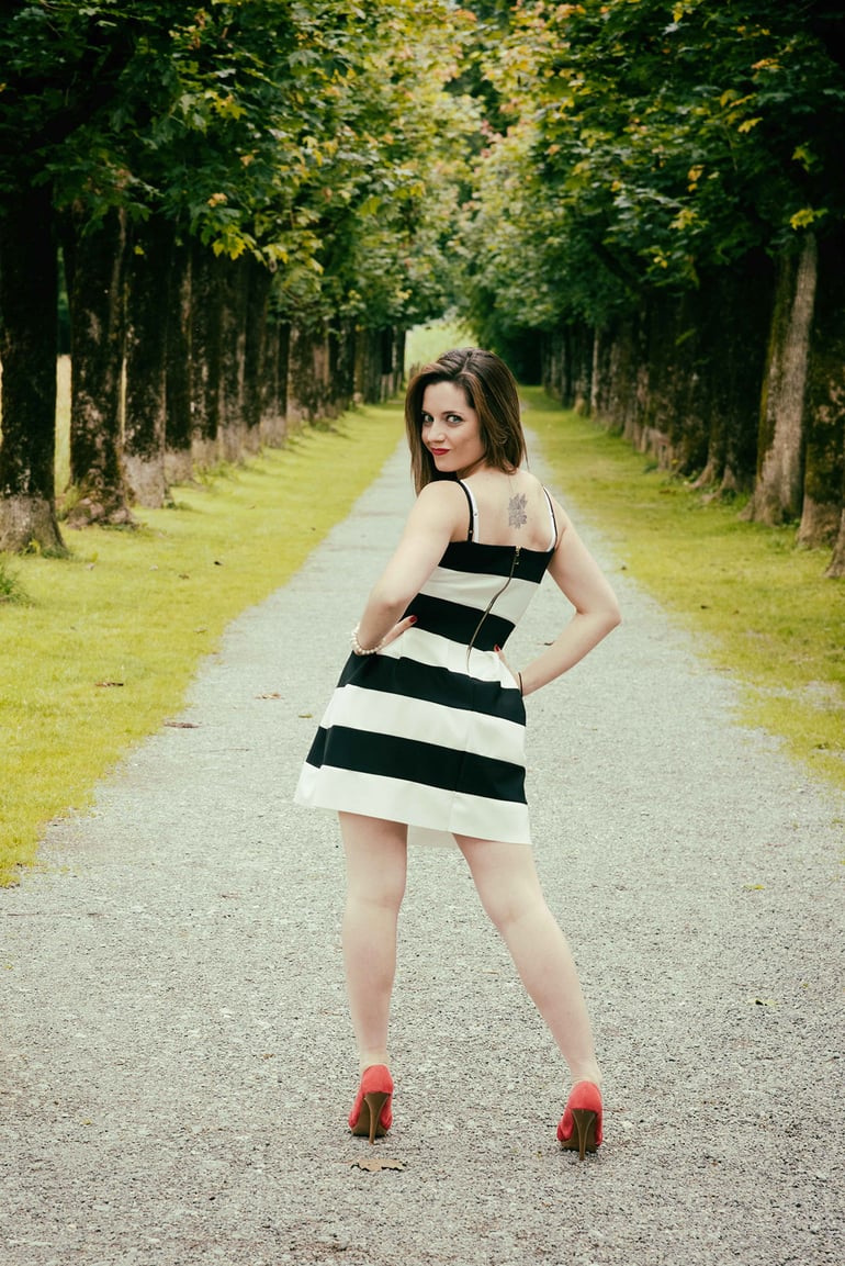 Für die Aufnahmen wird jeder beliebige, schöne Ort zum Set. Das Licht wird mit einer mobilen Blitzanlage und Lichtformern gestaltet. Kleider, Accessoires und Make up eröffnen viele Möglichkeiten, Stimmung zu erzeugen.